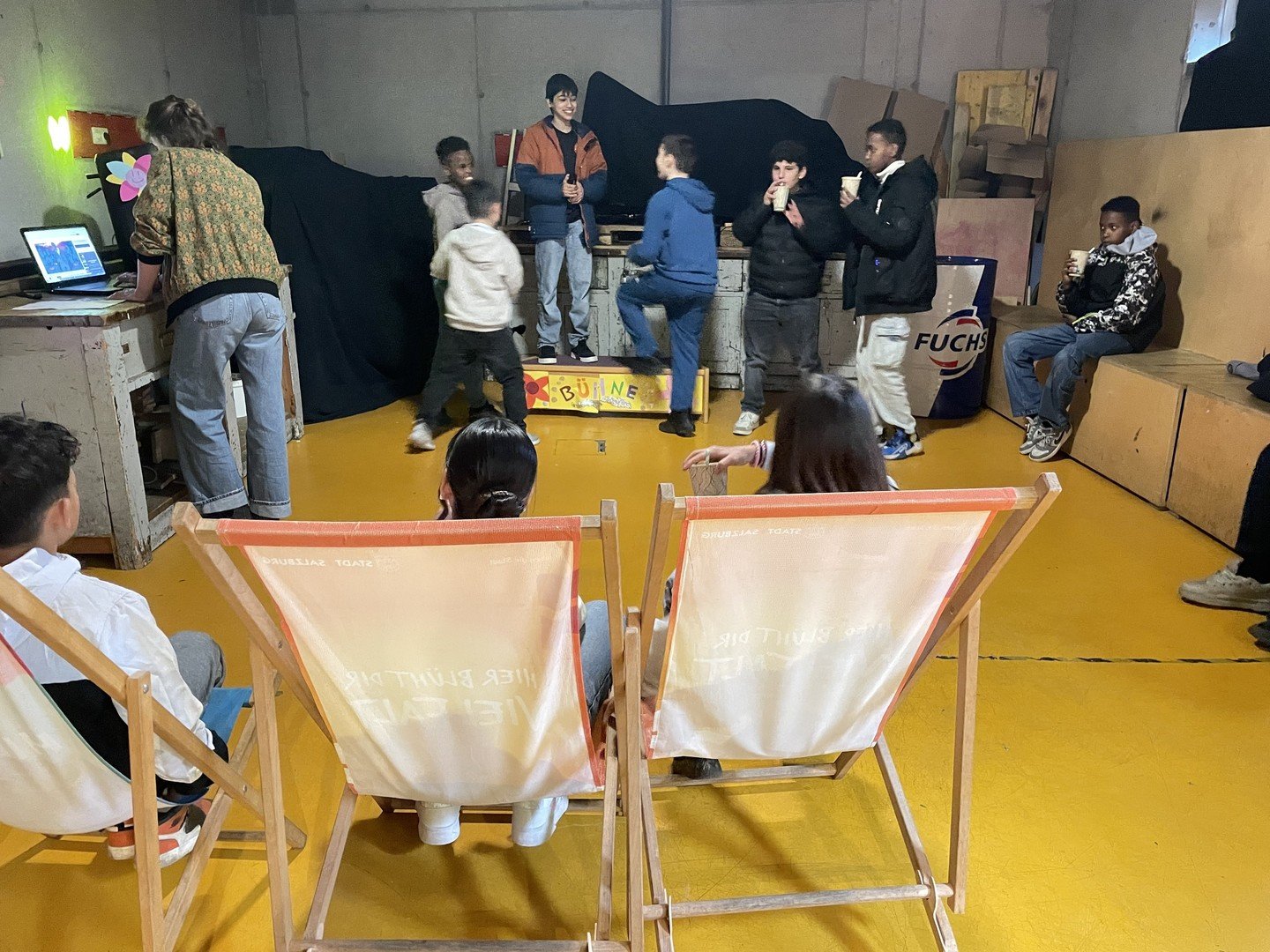 Performatives Kunstwerk "Two Black Squares" im Jugend- und Kinderhaus Liefering